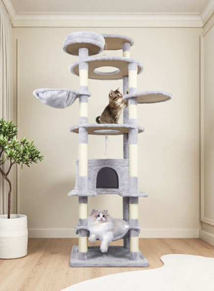 Very lovely, the cat cat tree was a bit smaller then I had imagined in width but the hight was very nice. Unlike other reviews, the material was very good and the wood was of good quality. Instructions were slightly difficult but overall a very good purchase!