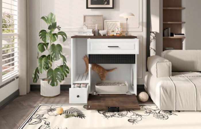 These are great scratcher boxes; I use them as “bridges” between Mainstays no-tools end-tables, and I use a little bit of rug tape to keep the scratchers in-place. They are easy to replace and the cats love them.